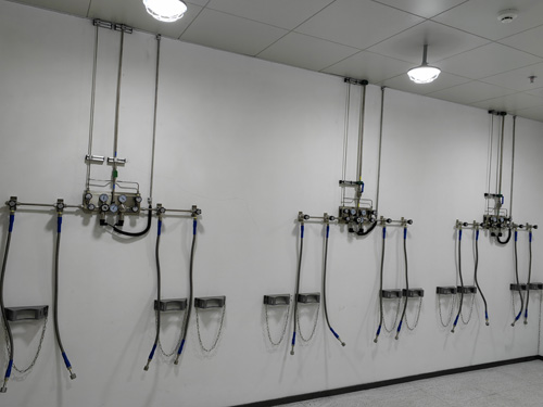 1.氣瓶間內負荷緩解顯示屏與試驗室內外的氣路電子設備相互之間并選擇SS316LBA管做出接,線路內表層光澤度為Ra<0.4umBA級線路。